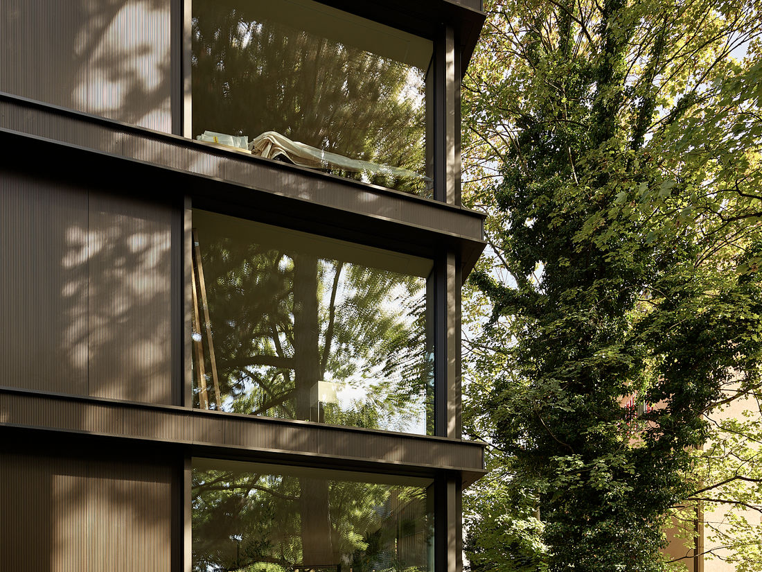 Komplettsanierung eines Mehrfamilienhauses mit insgesamt 22 Mietwohnungen über vier Wohngeschossen und 2 Gewerbeflächen im Untergeschoss. Die tragende Gebäudestruktur bleibt erhalten. Das Gebäude wird im Minergie Standard gebaut und zertifiziert.