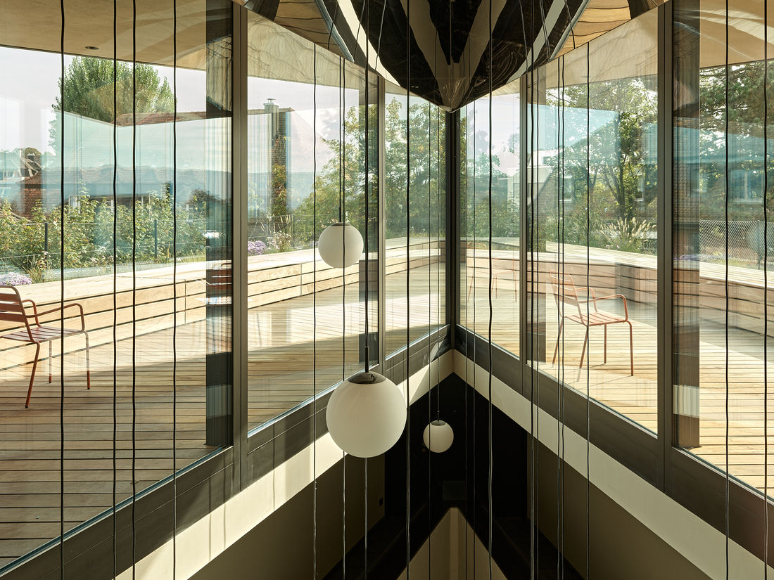 Die Wohnungen werden mittels zentralem Komfortlüftungsgerät versorgt. Die Gewerberäume sind mit separaten Lüftungsanlagen mit individueller Regulierung ausgestattet. Die Kellerräume und Nebenräume werden mittels Abluftventilatoren mit passiver Nachströmung entlüftet. Eine Herausforderung war die Integration der Lüftungsverteilung in die bestehende Gebäudestruktur.